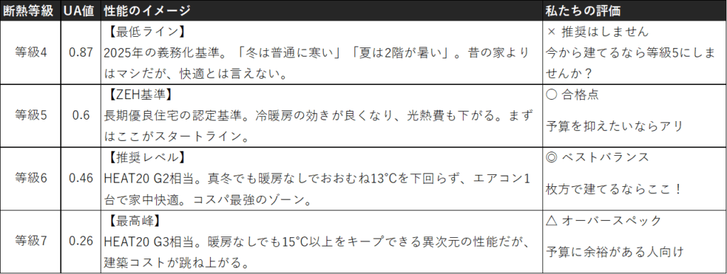 もちろん、性能が良いに越したことはありません。予算が潤沢にあるなら、等級7を目指すのも素晴らしい選択です。