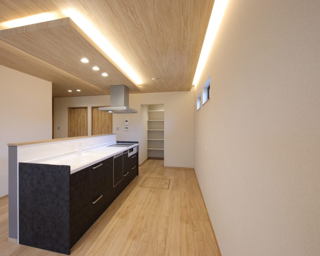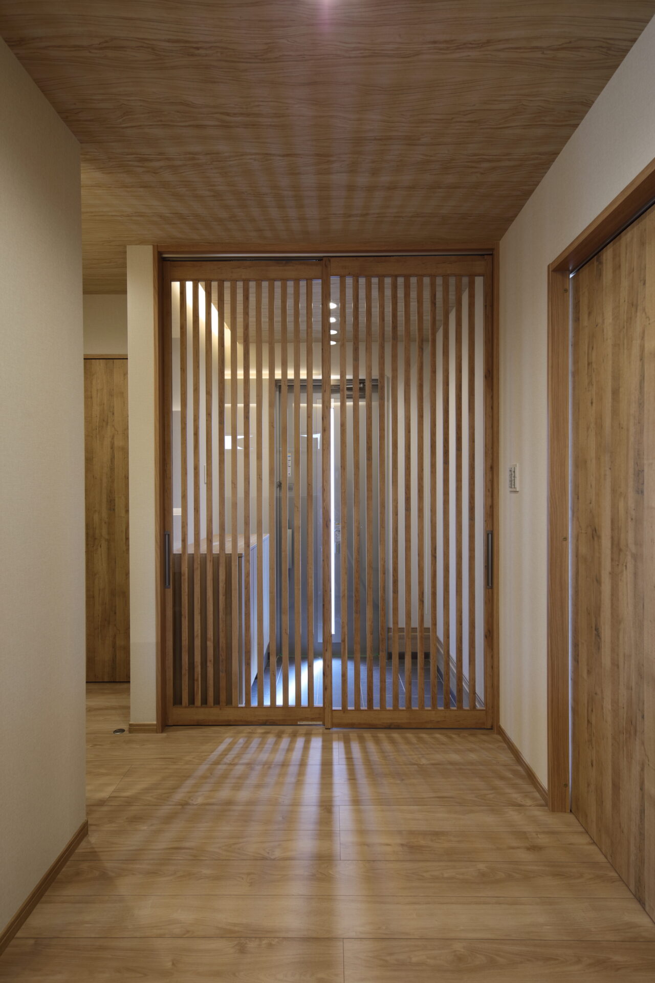 「一般的な住宅の廊下(78cm前後)では、車イスでの方向転換が難しい」ことをご存知ですか?このお家では、将来を見据えて廊下の有効幅を「90cm」確保しました。さらにトイレなどの扉はすべて「引き戸」を採用。開口部が広く、少ない力で開け閉めできるため、老後はもちろん、小さなお子様や、大きな荷物を持っての移動も驚くほどスムーズです。
