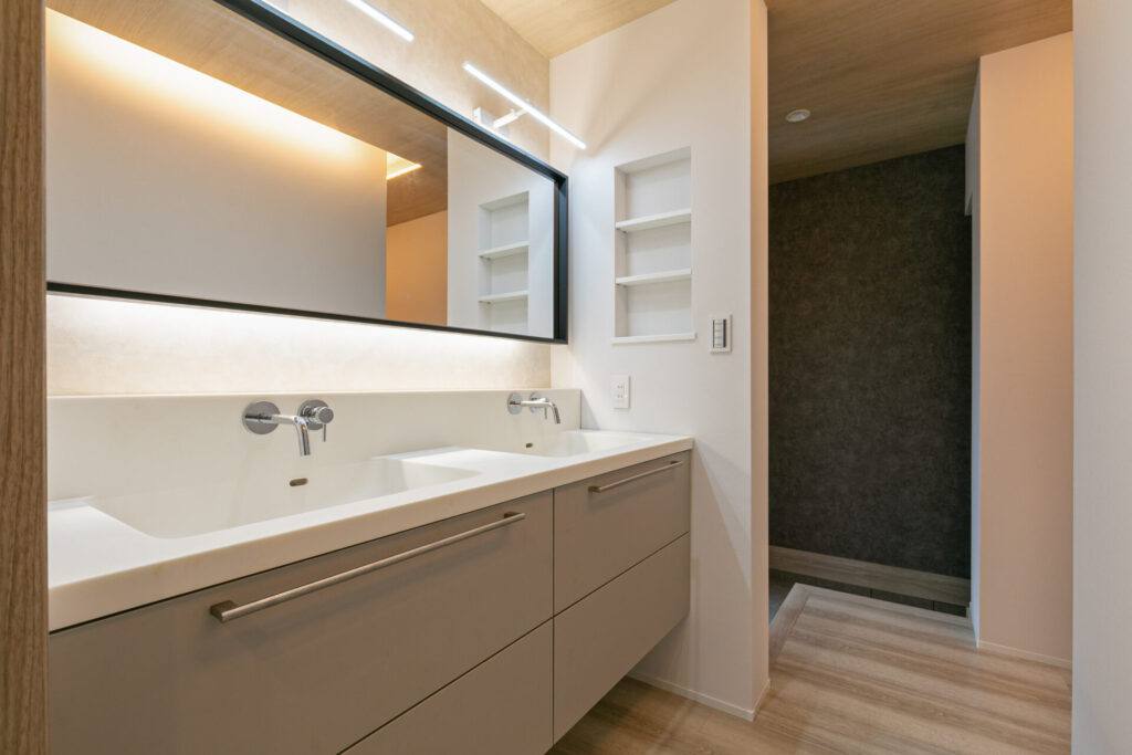 独立洗面台脱衣所と分けることで、朝の混雑を解消。