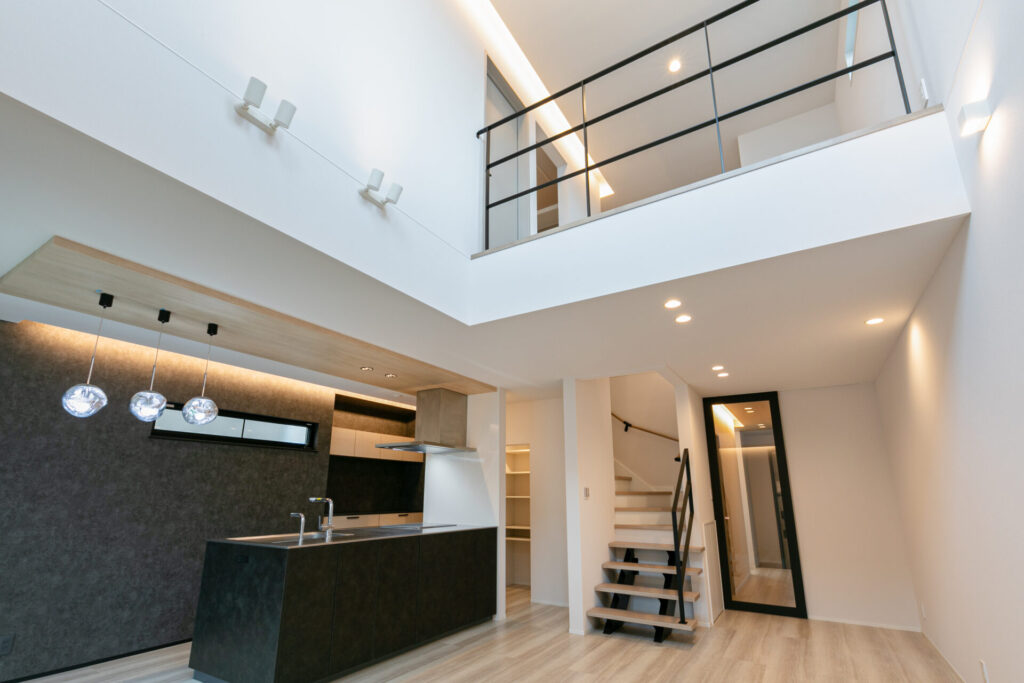 開放感あふれる21帖の吹抜けリビング、毎日の家事がもっと楽しく、もっとラクになる動線、適材適所の収納で、暮らしがすっきり整う子育て世帯のお家。